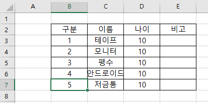 값이 쭉 있는 셀중에 제일 아래인 B7셀로 이동하는걸 볼 수 있습니다.