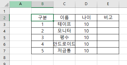 이렇게 값이 들어가 있는 표 B2에서 컨트롤+아래 키를 누르면