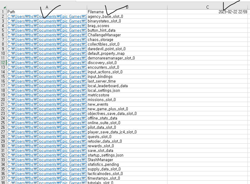 모든 파일을 리스트업해주고, 파일경로도 적어주고, 마지막으로 동작한 시간까지 입력해준다.